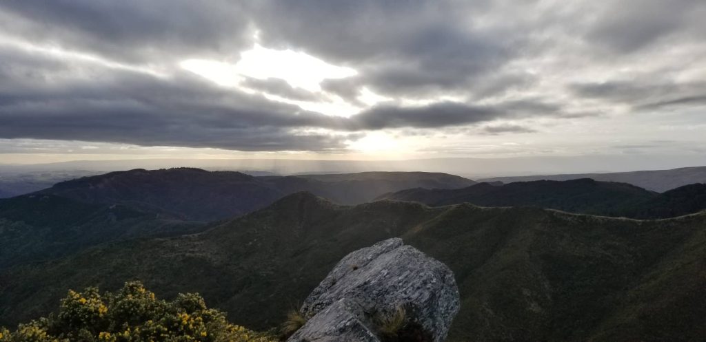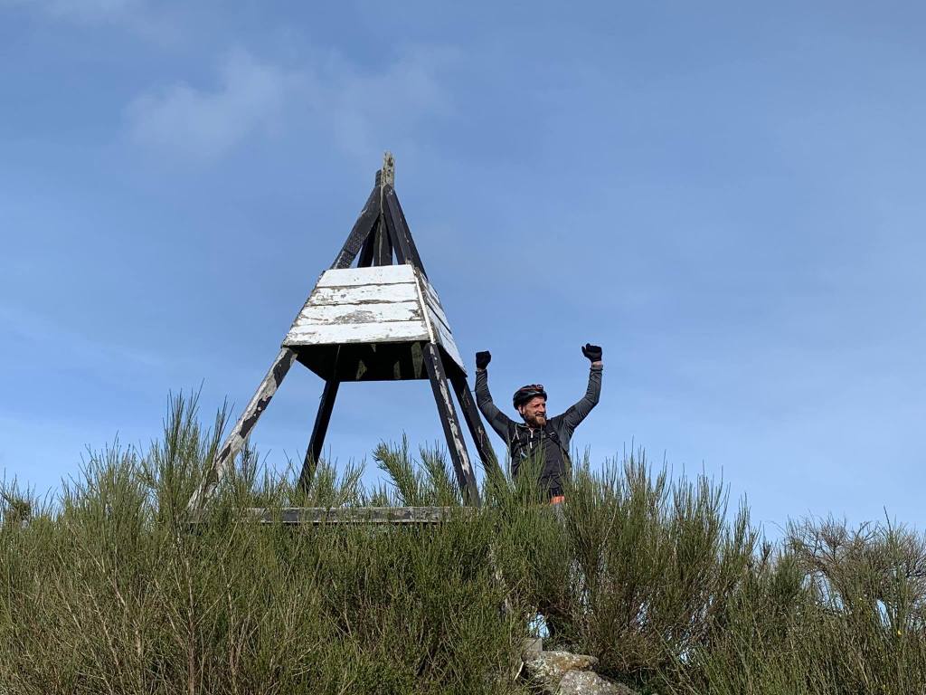 This year he went for another go. As the road access was closed he pushed his bike up the Big Hut track on Friday afternoon. The Big Hut track is a technical track about 5km long with 1000m of vert. It’s a long way up to push a bike! Unfortunately he realised when he got to the top that he left his helmet at the bottom so on Saturday he popped back down to fetch it. Then he pushed his bike up to Summit Rock (1450m) for the midday start.