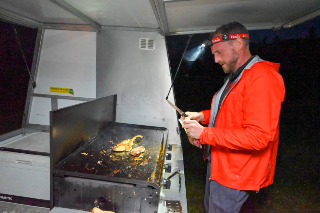 There was a degree of karma when Hamish returned and for his third loop rolled a 5. He set off and his penance was even more compounded when he tried to listen to music to get through the Powder Ridge climb but discovered his daughter had played with his phone and the only music downloaded was her ballet music! He suffered through the same 5 songs on repeat until the top of the hill (6km with 500m vert) – then messaged his daughter to tell her they needed to have a talk! He was second last home coming in at 8:27pm.