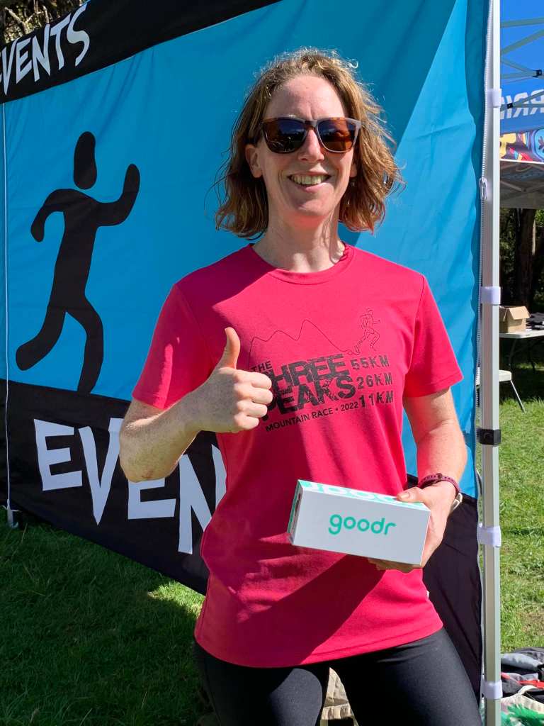 Luck was also on the side of Orlaith Heron. Also suffering from a torn meniscus she was going to avoid all the hills but rolled a 1, the flattest loop and only one she was able to do! After that she rolled a 3, went to the Wheel, spun a prize, claimed a new pair of GoodR sunglasses and promptly DNFed.