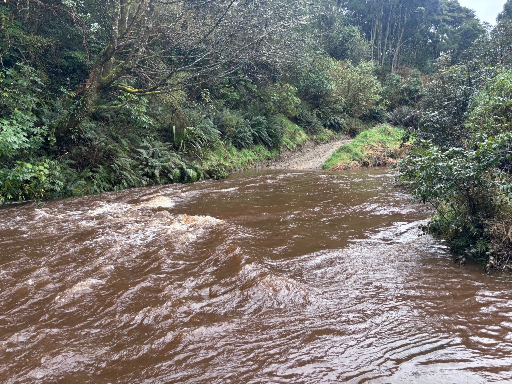 Loop 5 was out of the question and loop 1 needed rearranging due to Silver Stream crossings. 4 people rolled a 6 and headed off. After linking arms and crossing the waist deep torrent on Green Gage track they called us up and we decided that 6 and 7 were also too risky.