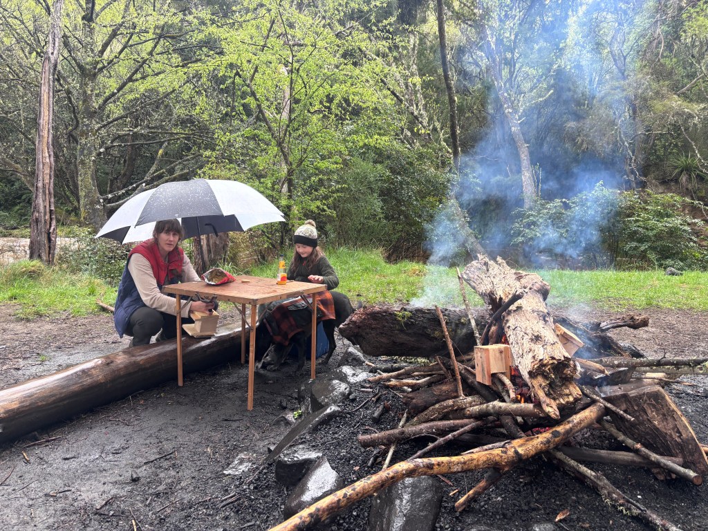Only 5 of us stayed over Saturday night. The rain got worse! Isaac dripped away in his hammock in the trees. Andreas and Chris tented in a large pond and left to Fiordland for some sunny weather around 5am.